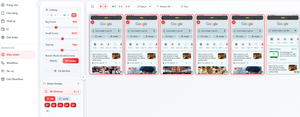Giao diện cloud phone của Max Phone Farm Cloud